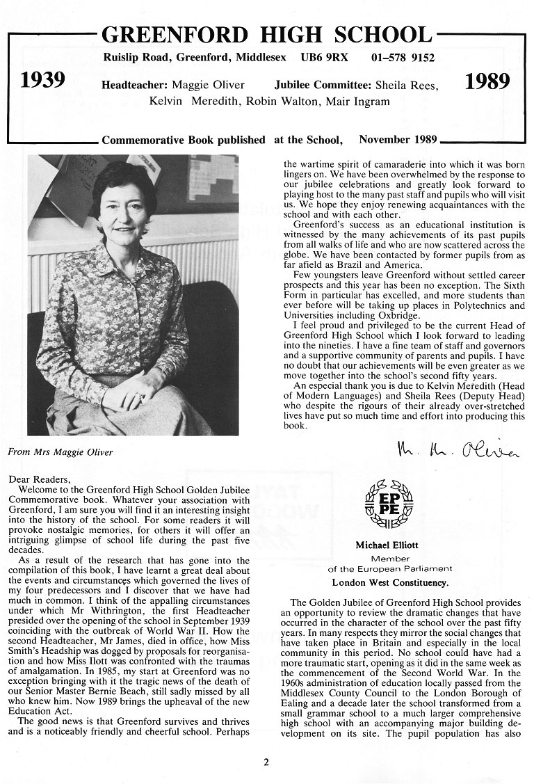Welcome to the Greenford High School Golden Jubilee Commemorative book.