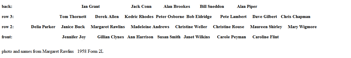 Derek Allen, Madeleine Andrews, Alan Brookes, Janice Buck, Chris Chapman, Gillian Clynes, Jack Conn, Bob Eldridge, Caroline Flint, Dave Gilbert, Ann Harrison, Jennifer Joy, Pete Lambert, Peter Osborne, Delia Parker, Carole Peyman, Alan Piper, Margaret Rawlins, Kedric Rhodes, Christine Rouse, Susan Smith, Bill Sneddon, Tom Thornett, Christine Weller, Janet Wilkins