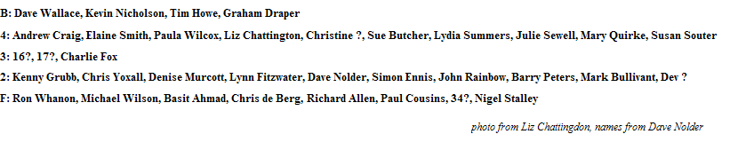 Andrew Craig, Barry Peters, Basit Ahmad, Charlie Fox, Chris de Berg, Chris Yoxall, Dave Nolder, Dave Wallace, Denise Murcott, Elaine Smith, Graham Draper, John Rainbow, Julie Sewell, Kenny Grub, Kevin Nicholson, Liz Chattington, Lydia Summers, Lynn Fitzwater, Mark Bullivant, Mary Quirke, Michael Wilson, Nigel Stalley, Paul Cousins, Paula Wilcox, Richard Allen, Ron Whanon, Simon Ennis, Sue Butcher, Susan Souter, Tim Howe