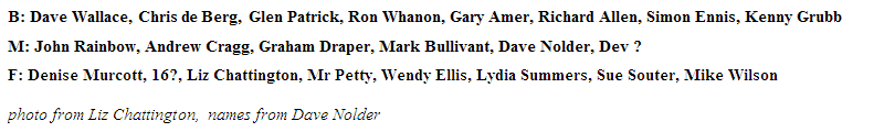 Andrew Cragg, Chris de Berg, Dave Nolder, Dave Wallace, Denise Murcott, Gary Amer, Glen Patrick, Graham Draper, John Rainbow, Kenny Grubb, Liz Chattington, Lydia Summers, Mark Bullivant, Mike Wilson, Mr Petty, Richard Allen, Ron Whanon, Simon Ennis, Sue Soutar, Wendy Ellis