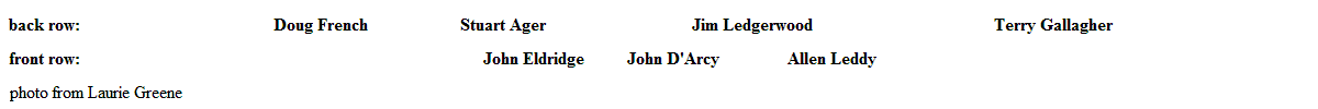 John Eldridge, Allen Leddy, John D'Arcy, Doug French, Stuart Ager, Terry Gallagher, Jim Ledgerwood