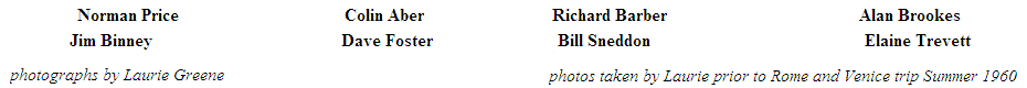 Colin Aber, Richard Barber, Jim Binney, Alan Brookes, Dave Foster, Norman Price, Bill Sneddon, Elaine Trevett