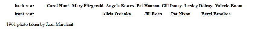 Carol Hunt, Mary Fitzgerald, Angela Bowes, Pat Hannan, Gill Ismay, Lesley Delroy, Valerie Boom, Alicia Osianka, Pat Nixon, Jill Rees, Beryl Brookes photo by Joan Marchant