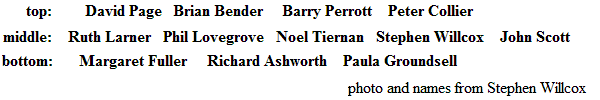 David Page, Brian Bender, Barry Perrott, Peter Collier, Ruth Larner, Phil Lovegrove, Noel Tiernan, Stephen Willcox, John Scott, Margaret Fuller, Richard Ashworth, Paula Groundsell