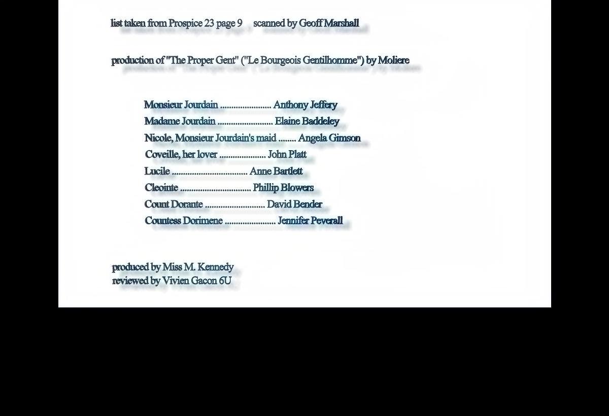 production of "The Proper Gent" ("Le Bourgeois Gentilhomme") by Moliere