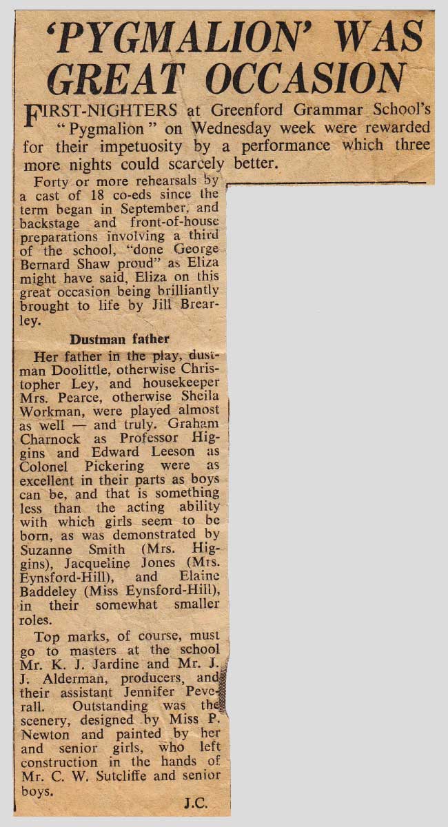 Forty or more rehearsals by a cast of 18 co-eds since the term began in September, and backstage and front-of-house preparations involving a third of the school, done George Bernard Shaw proud as Eliza might have said, Eliza on this great occasion being brilliantly brought to life by Jill Brearley.