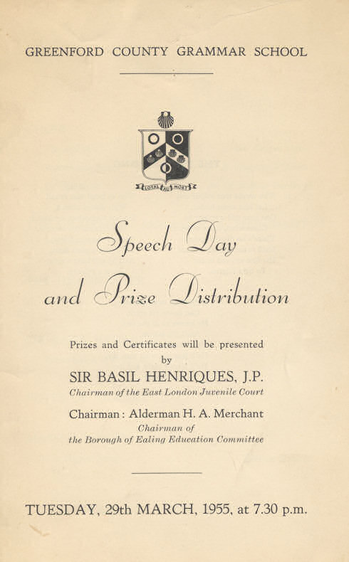 1955 Speech Day Cover Page