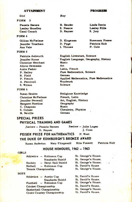 PEISER PRIZE FOR MATHEMATICS P. West THE DUKE OF EDINBURGH'S BRONZE AWARD
