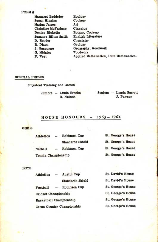 HOUSE HONOURS - 1963- 1964