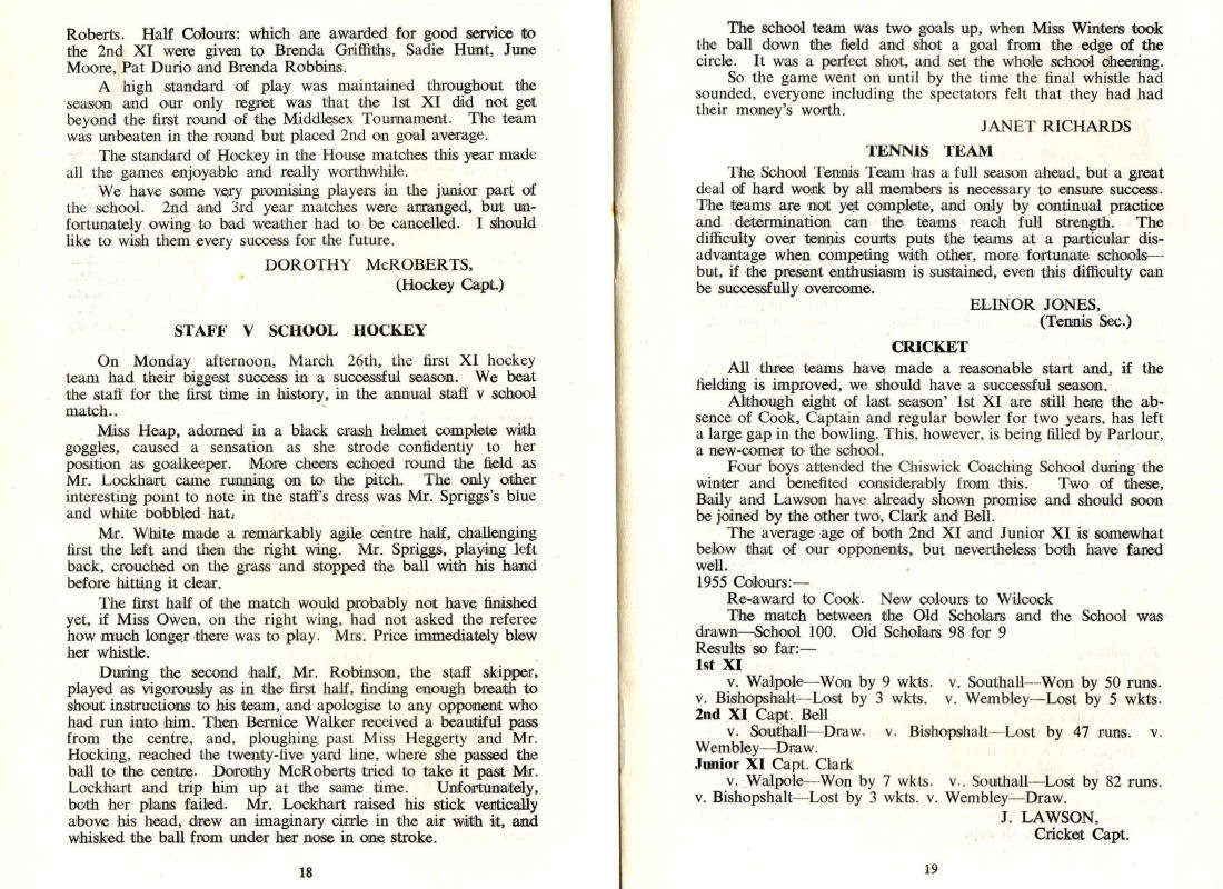Half Colours: 2nd XI to Brenda Griffiths, Sadie Hunt, June Moore, Pat Durio and Brenda Robbins