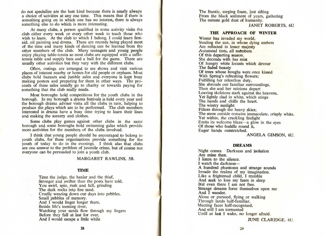 p28/29 MARGARET RAWLINS, 5B. JANET ROBERTS, 6U ANGELA GIMSON, 6U JUNE CLARIDGE. 6U p29