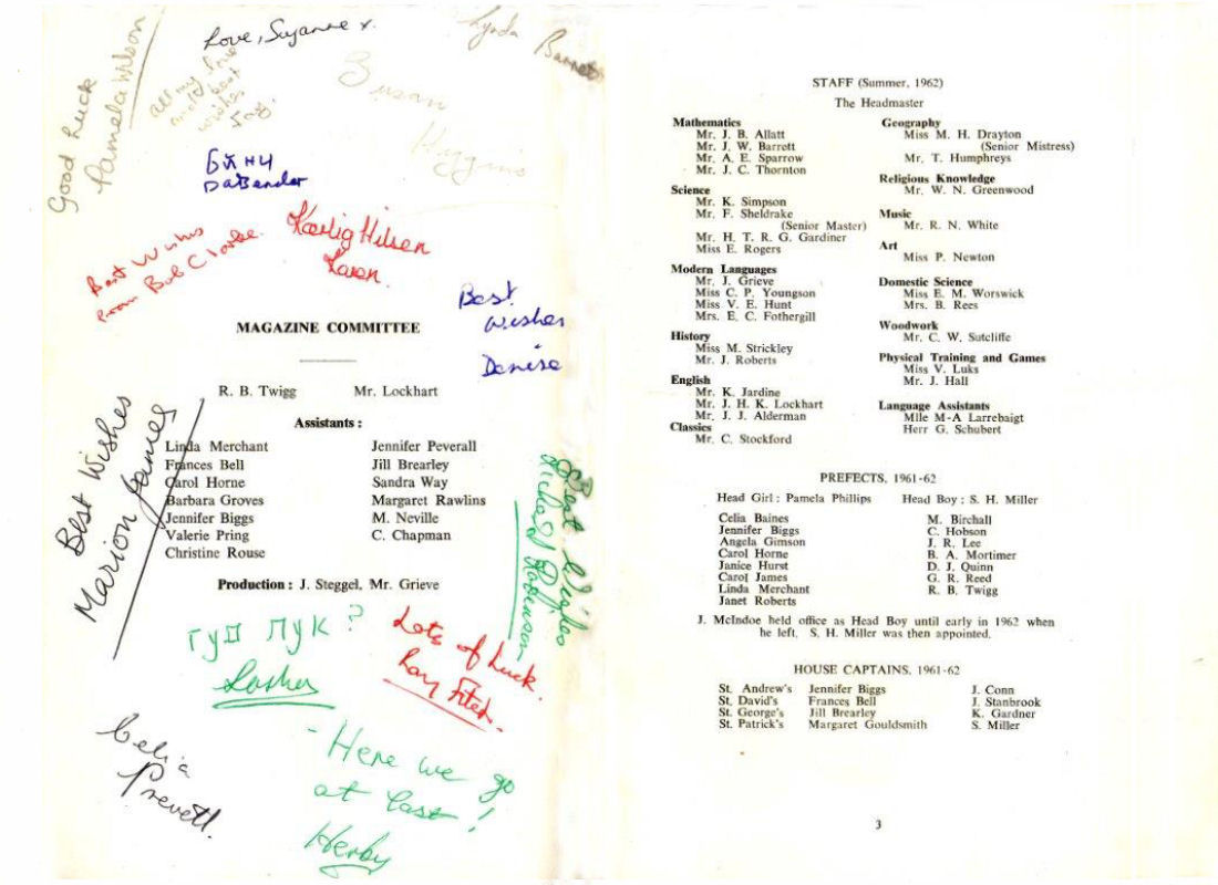 Head Girl : Pamela Phillips Head Boy : S. H. Miller