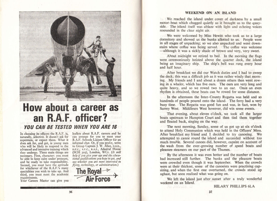 In the afternoon the Inter-County Regatta was held and so hundreds of people poured onto the island- The ferry had a very busy time. The Regatta was good fun and was, in fact, won by Surrey West. Middlesex West however, did win some events.