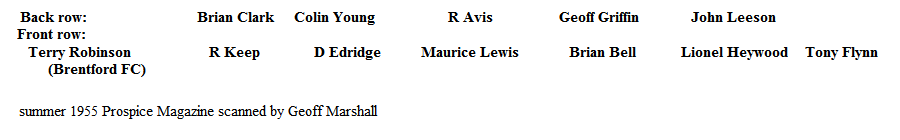 2nd XI Brian Clark, Colin Young, R Avis, Geoff Griffin, John Leeson, TH Robinson, R Keep, D Edridge, Maurice Lewis, Brian Bell, Lionel Heywood, Tony Flynn