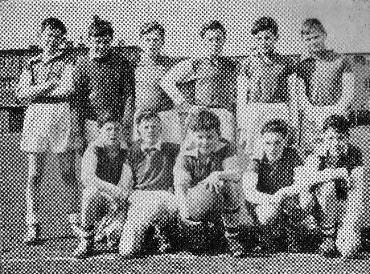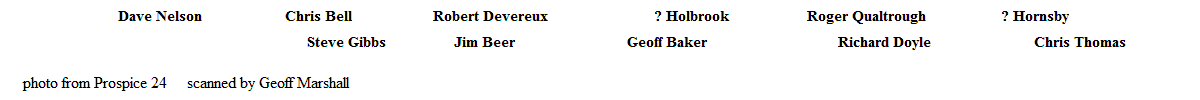 1st Team Basketball, Rik Fox, Jack Conn (Capt), John Hibbert, Ken Gardner, Pete Lambert, Keith Hickson, Dave Foster, photo from Prospice 24, scanned by Geoff Marshall