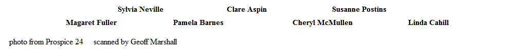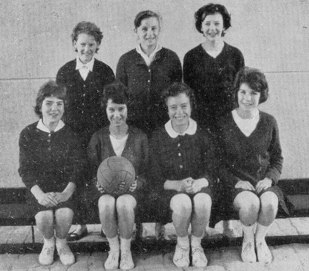 1st Team Netball Sylvia Neville, Clare Aspin, Susanne Postins, Magaret Fuller, Pamela Barnes, Cheryl McMullen, Linda Cahill photo from Prospice 24, scanned by Geoff Marshall
