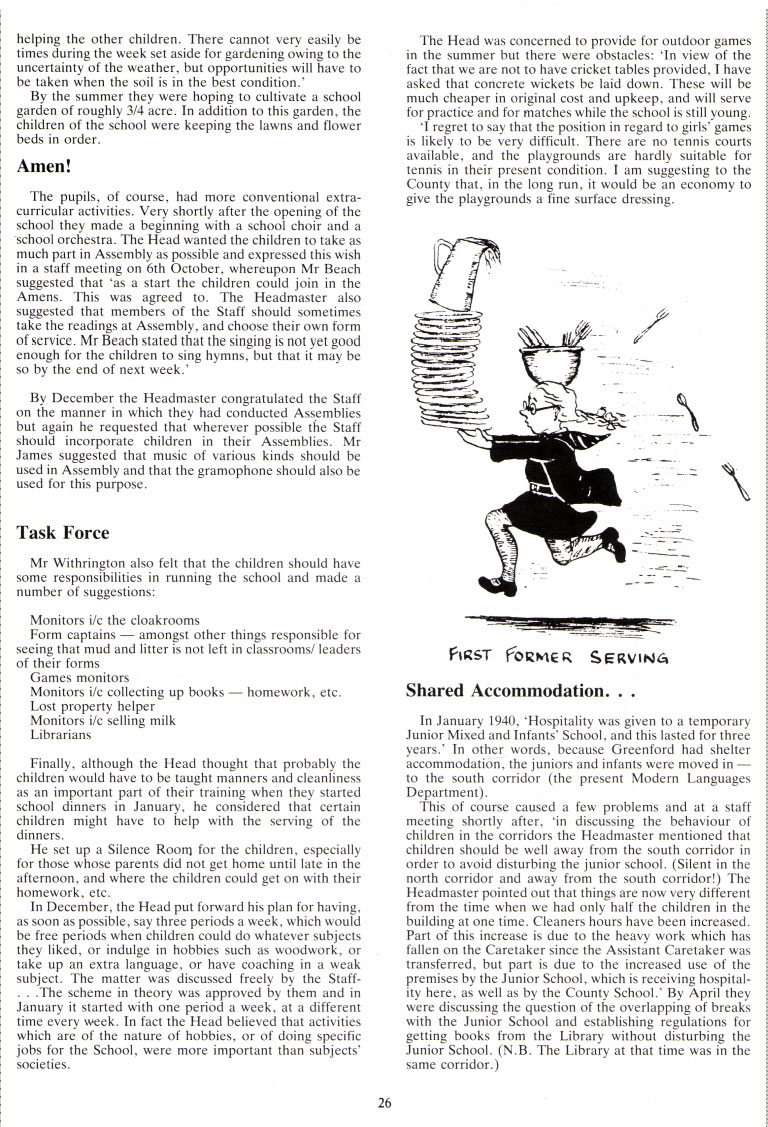 Mr Withrington also felt that the children should have some responsibilities in running the school and made a number of suggestions: