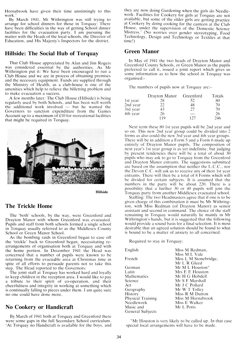 By March of 1941 both at Torquay and Greenford there were some gaps in the full Secondary School curriculum.