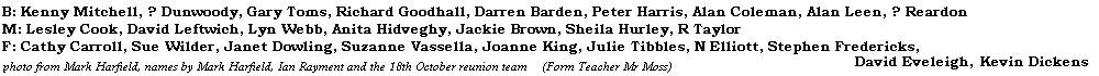 ? Dunwoody, ? Reardon, Alan Coleman, Alan Leen, Anita Hidveghy, Cathy Carroll, Darren Barden, David Eveleigh, David Leftwich, Gary Toms, Jackie Brown, Janet Dowling, Joanne King, Julie Tibbles, Kenny Mitchell, Kevin Dickens, Lesley Cook, Lyn Webb, N Elliott, Peter Harris, R Taylor, Richard Goodhall, Sheila Hurley, Stephen Fredericks, Sue Wilder, Suzanne Vassella