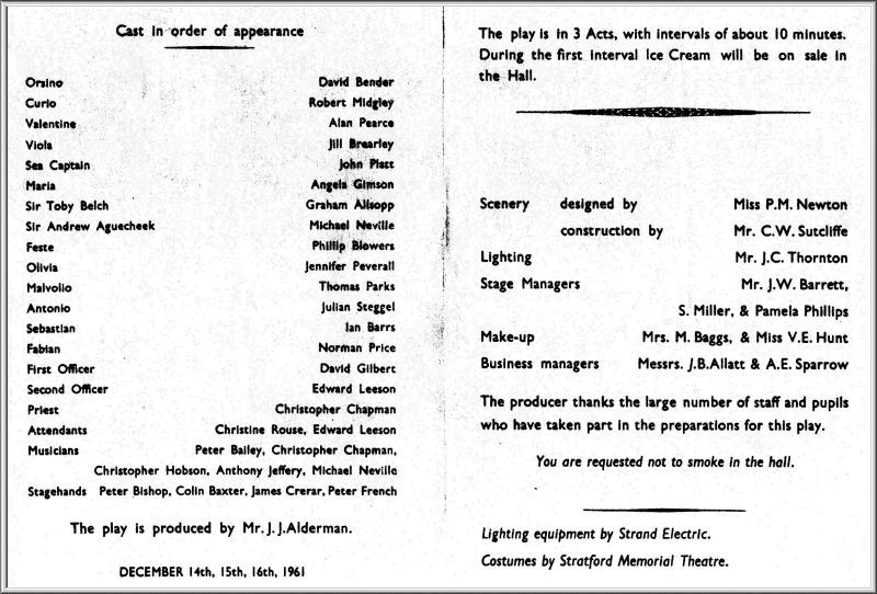 The producer thanks the large number of staff and pupils who have taken part in the preparations for this play.