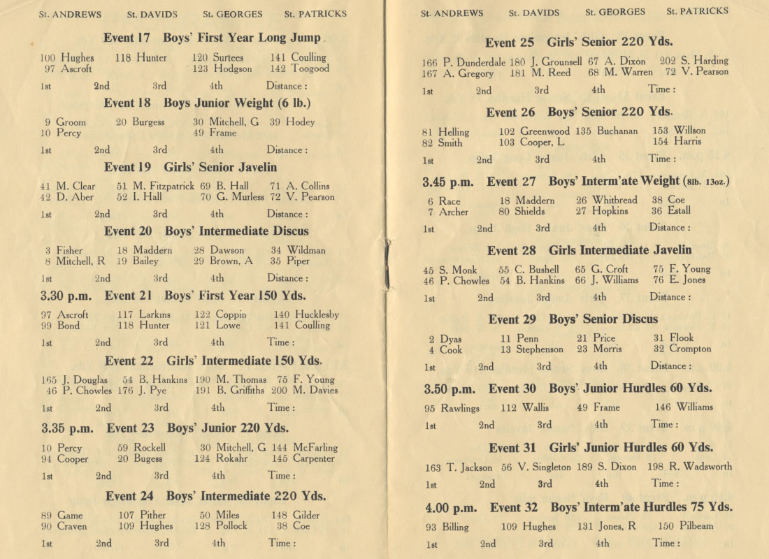 3.50 p.m. Event 30 Boys' Junior Hurdles 60 Yds.