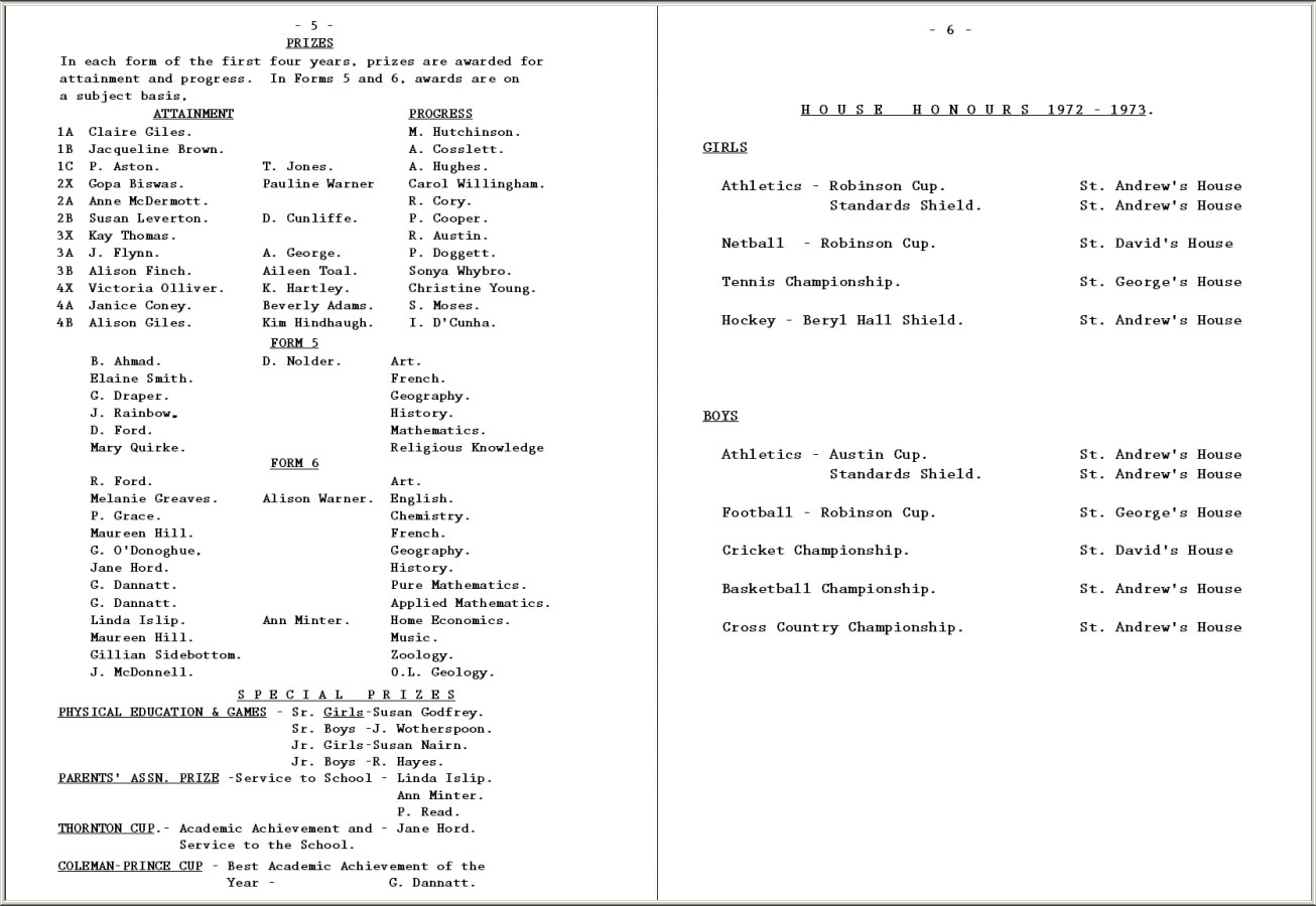 In each form of the first four years, prizes are awarded for attainment and progress.