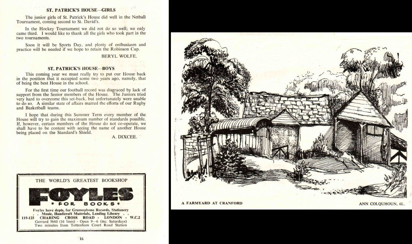 ST. PATRICK'S HOUSE GIRLS BERYL WOLFE ST. PATRICK'S HOUSE BOYS A. DIXCEE p16 A FARMYARD AT CRANFORD, ANN COLQUHOUN 6L p17