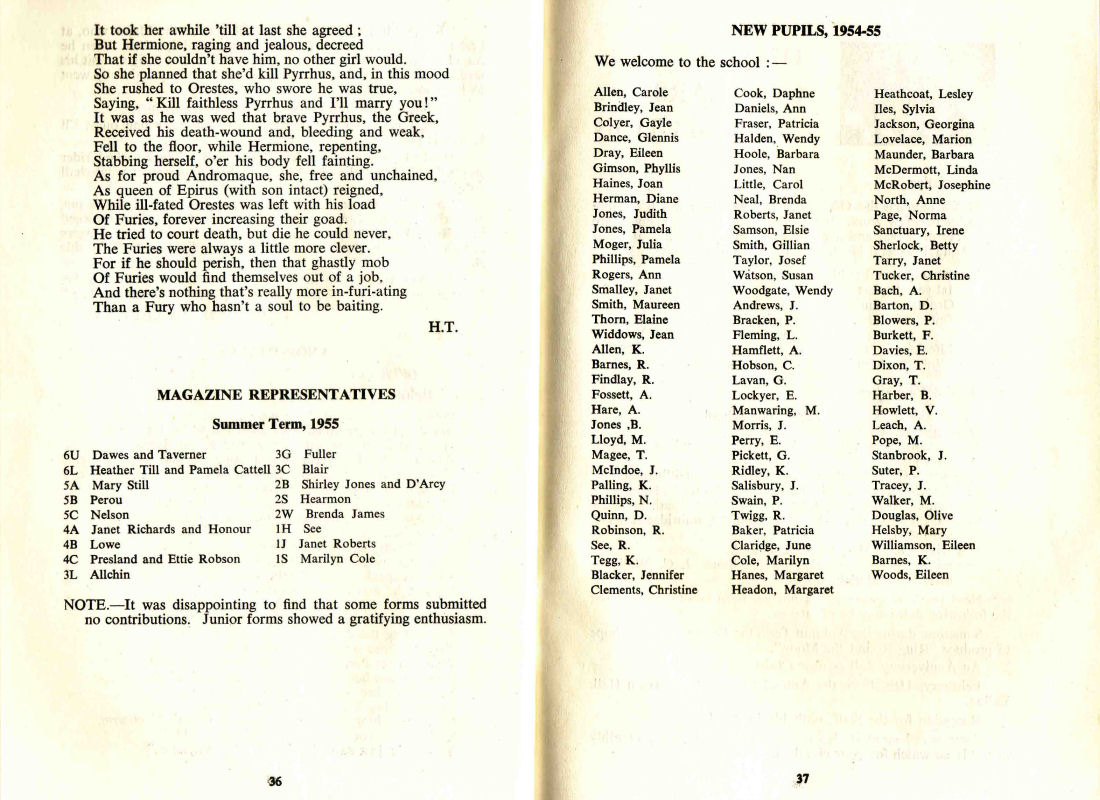 NEW PUPILS, 1954 - 55