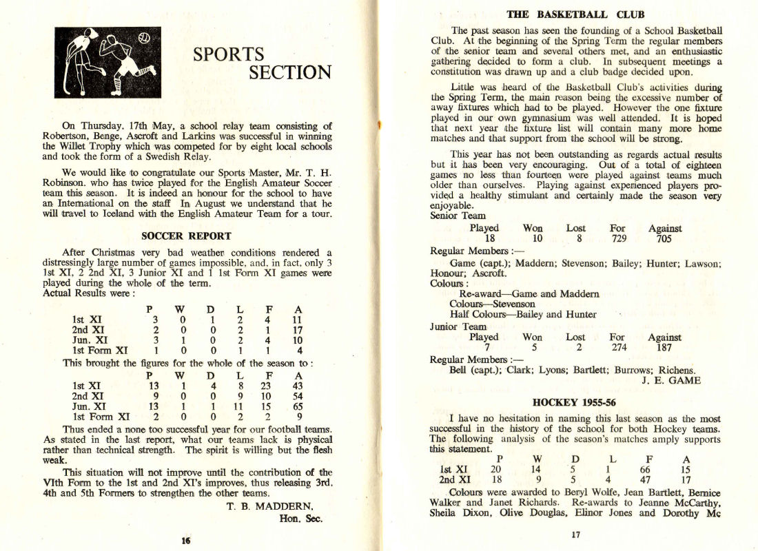 Colours were awarded to Beryl Wolfe, Jean Bartlett, Bernice Walker and Janet Richards