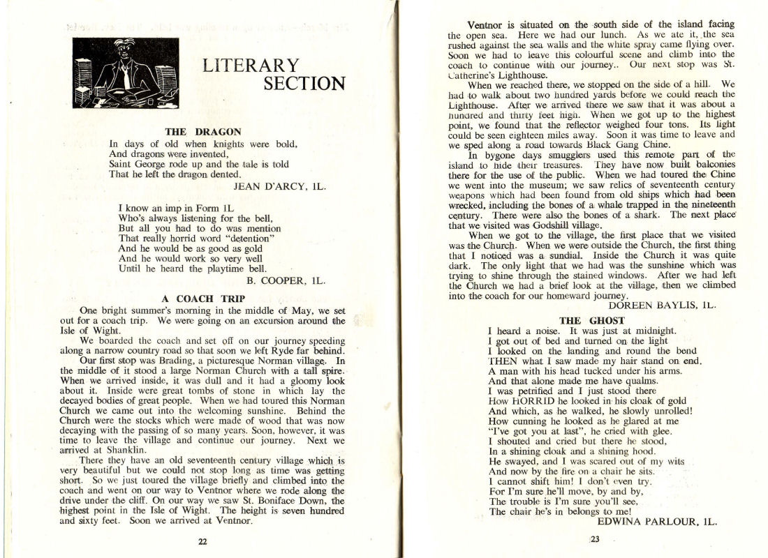 LITERARY SECTION JEAN D'ARCY 1L, B. COOPER 1L, DOREEN BAYLIS 1L, EDWINA PARLOUR 1L p23