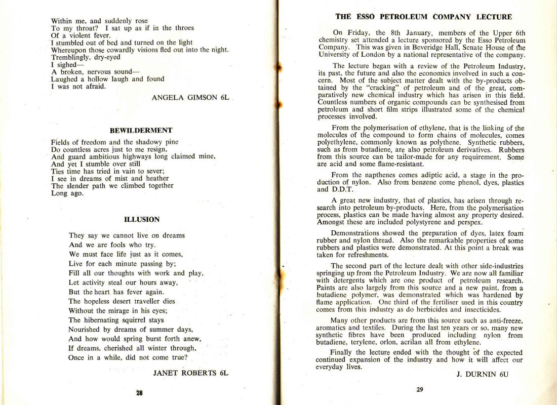 ANGELA GIMSON 6L JANET ROBERTS 6L THE ESSO PETROLEUM COMPANY LECTURE J. DURNIN 6U p29