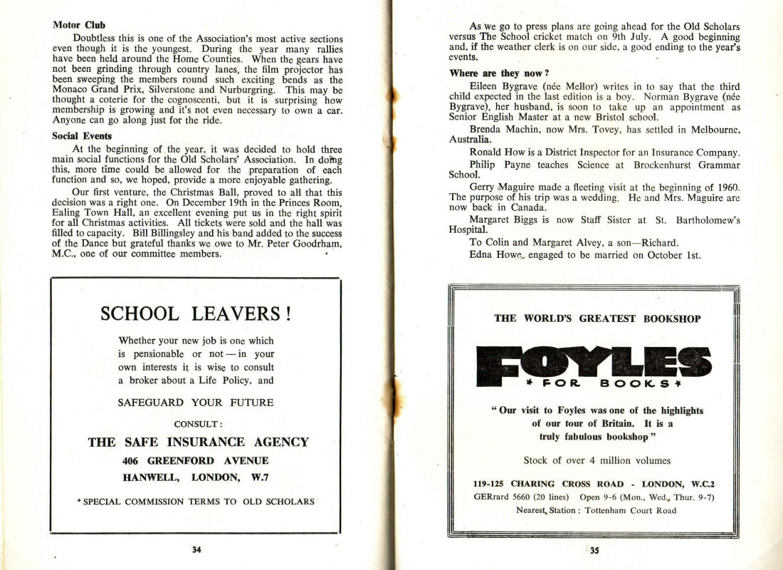 Eileen Bygrave (nee Mellor) writes in to say that the third child expected in the last edition is a boy. Norman Bygrave (nee Bygrave), her husband, is soon to take up an appointment as Senior English Master at a new Bristol school