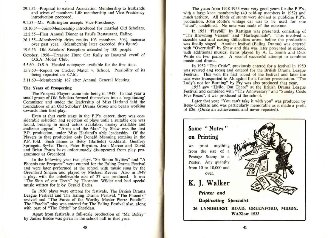 Miss Harland, Donald Manning, Betty (Barfield) Goddard, Geoffrey Springett, Syvlia Thom, Peter Boynton, Jean Mercer and David and Brian Evans, Michael Reeves, Thornton Wilder, Gerald Eades