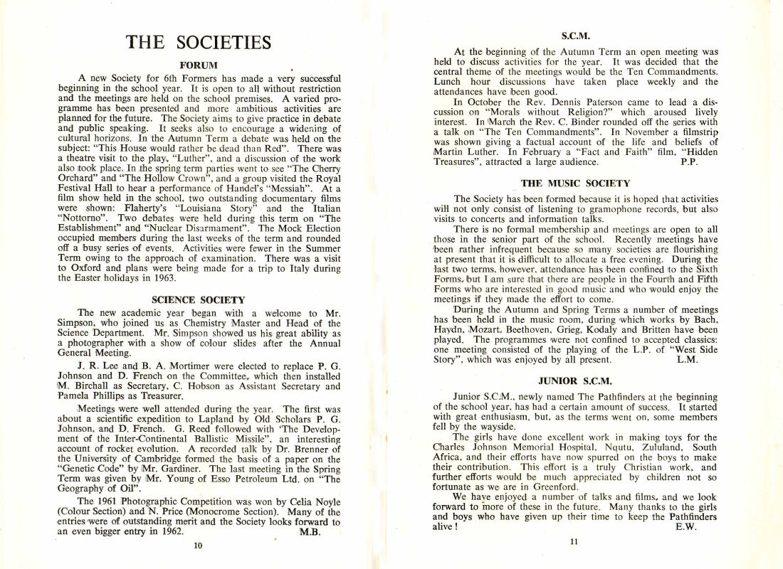 J. R. Lee and B. A. Mortimer were elected to replace P. G. Johnson and D. French on the Committee, which then installed M. Birchall as Secretary, C. Hobson as Assistant Secretary and Pamela Phillips as Treasurer