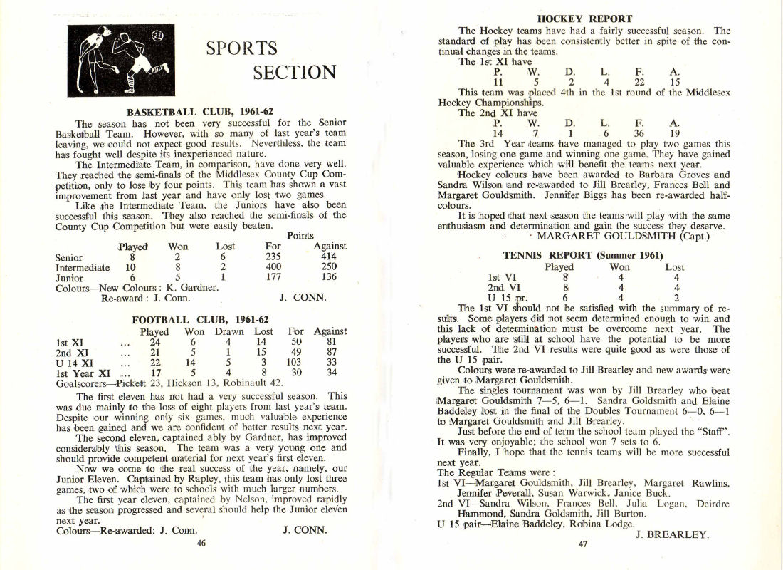 Hockey colours have been awarded to Barbara Groves and Sandra Wilson and re - awarded to Jill Brearley, Frances Bell and Margaret Gouldsmith