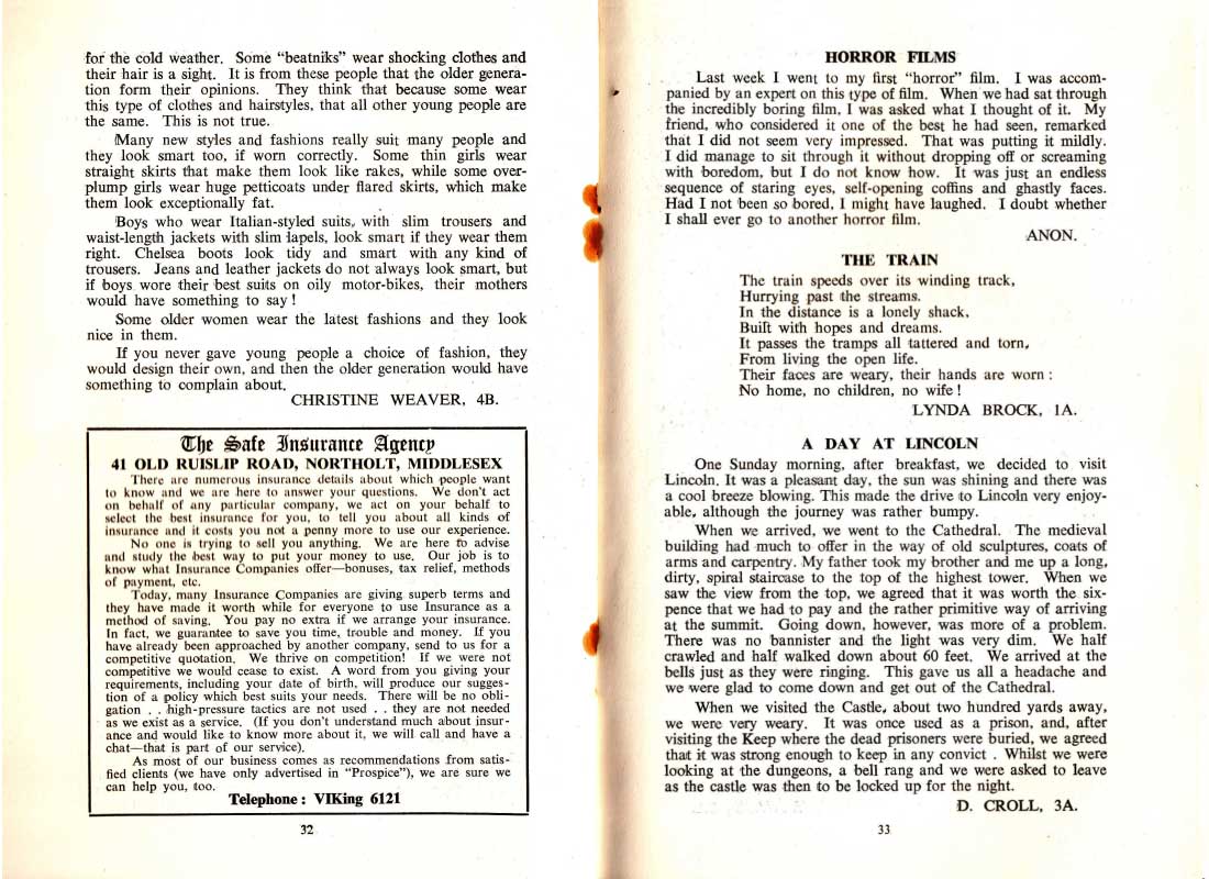 CHRISTINE WEAVER, 4B. 32 HORROR FILMS ANON. THE TRAIN LYNDA BROCK, 1A. A DAY AT LINCOLN D. CROLL, 3A. 33