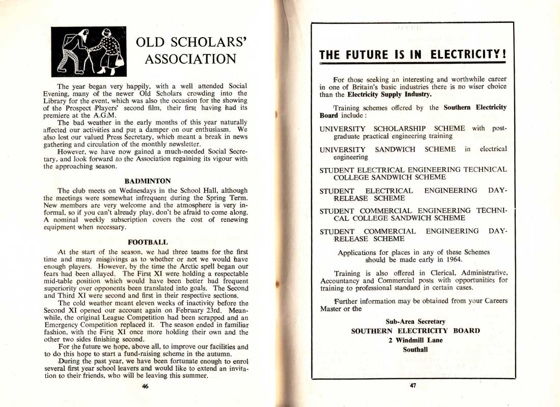 OLD SCHOLARS' ASSOCIATION BADMINTON FOOTBALL 46 Southern Electricity Board 47