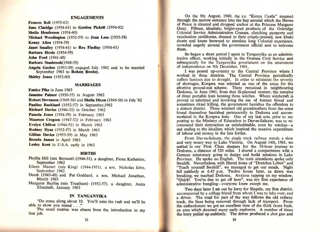 So began a short period I spent in Tanganyika as an administrative officer, working initially in the Oversea Civil Service and subsequently for the Tanganyika government on the attainment of independence on 9th December, 1961,