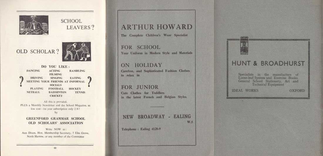 GREENFORD GRAMMAR SCHOOL OLD SCHOLARS' ASSOCIATION Ann Dixon, Hon. Membership Secretary 60 ARTHUR HOWARD
