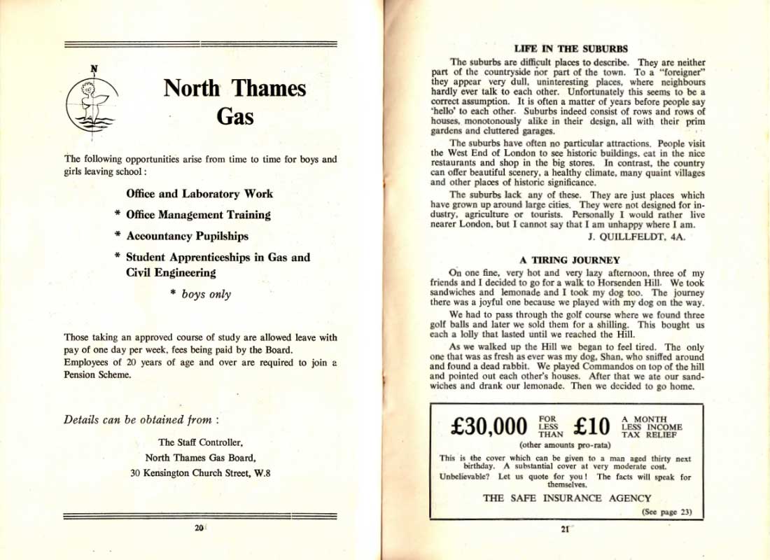 North Thames Gas 20 LIFE IN THE SUBURBS J. QUILLFELDT, 4A. A TIRING JOURNEY THE SAFE INSURANCE AGENCY 21
