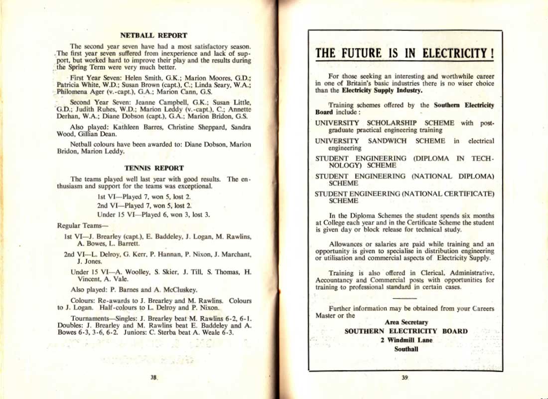 Netball colours have been awarded to: Diane Dobson, Marion Bridon, Marion Leddy.