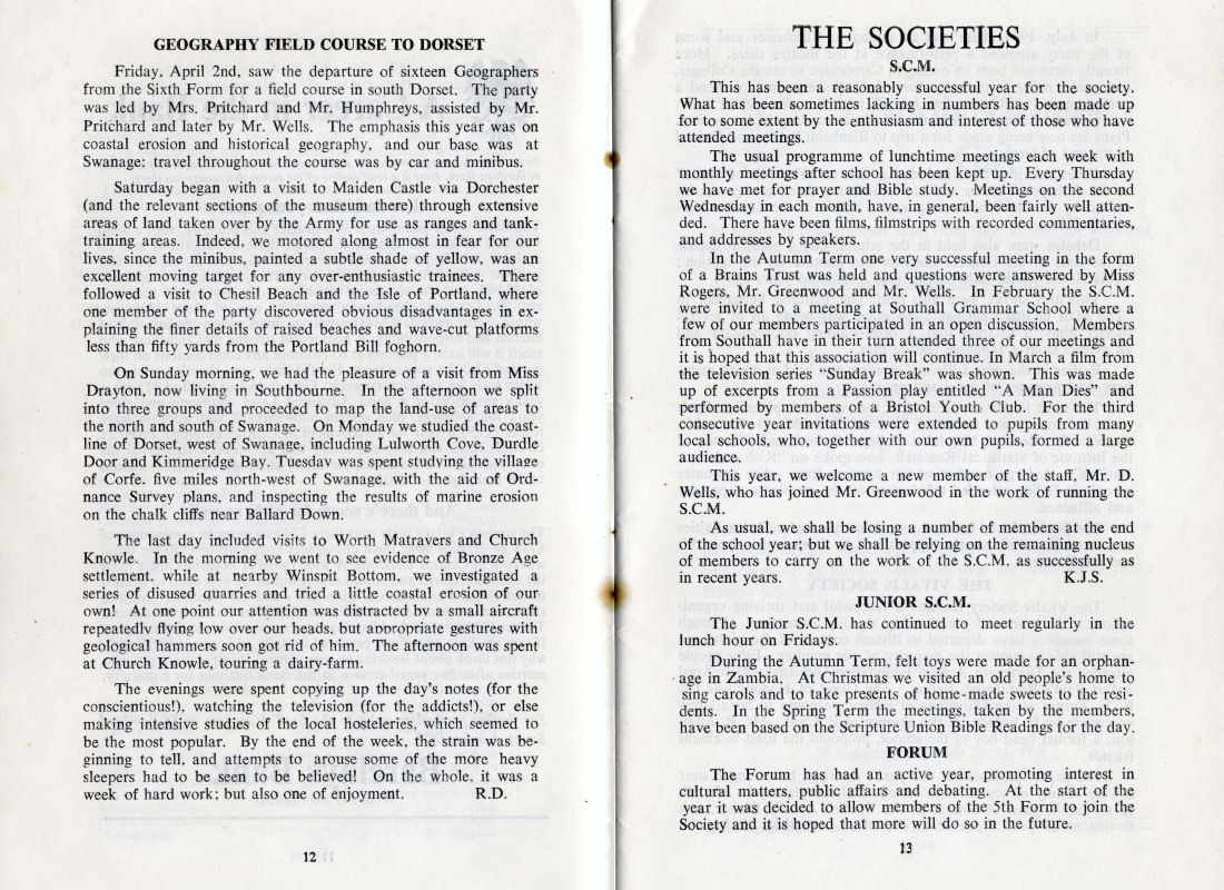 "MUCH ADO ABOUT NOTHING'* Shakespeare's "Much Ado About Nothing" is not perhaps one of the easiest of plays to produce in its somewhat awkward blending of comedy and near tragedy. Yet an excellent effort was made by the school dramatic society when the play was produced in the School Hall on the evenings of 8th-11th December, 1965. Continuity was good and there were no pauses or hold-ups between the scenes as so often occurs in amateur productions of this kind. Characters moved on and off stage with well-timed accuracy. This was helped because there were no major scene changes: one set was cleverly adapted to represent a garden, a street and so on. The acting of the entire cast deserves praise also. Diction was clear and the voices were audible in all parts of the hall. As Beatrice and Benedick, Lesley Broadley and E. Leeson gave good performances and made the most of their comic and witty exchanges. Claudio was convincingly presented by P- Sampson and so was the hapless Hero by Barbara Phillips, although rather over-consciously acted at times. Undoubtedly the audience most enjoyed the farcical scenes that involved the Watch. The ridiculous Dogberry was acted with great zest and a fine sense of the comic by C. Ley; he was well supported by M. Barry as Verges and the Watch played by V. Coleman, E. Hughes, M. Linane and S. Polgreen, who all carried out their duties with amusing incompetence and whose very appearance set the audience laughing even before they spoke. J.T. CAST: Don Pedro, Prince of Arragon G. Adams Don John, his bastard brother - - - R. Ashworth Claudio, young lord......R. Sampson Benedick, young lord......E. Leeson Leonato, Governor of Messina - - - - J. Davis Antonio, his brother.....C. Houghton Borachio, follower of Don John J. Hanson Conrade, follower of Don John - - - D. Kingsman A Lord........S. Baddeley Dogberry, a Contable......C. Ley Verges, his assistant......M. Barry The Watch - V. Coleman, E. Hughes, M. Linane, S. Polgreen Friar........I. MacDermott Abbess........Judith Lester Sexton........B. Bender Hero, Leonato's daughter - Barbara Phillips Beatrice, Leonato's neice .... Lesley Broadley Margaret, gentlewoman attending on Hero - Gillian Richardson Ursula, gentlewoman attending on Hero - - Joanne Harris Play Produced by - K. I. Jardine, J. J. Alderman, A. R. Keenan Scenery Construction.....C. S. Sutcliffe Scenery Design......Miss P. Newton Scenery Painting......Senior Girls 12 Stage Management - - - >. J. Wells and Senior Boys Lighting.......J. C. T. Thornton Make-up ... - Mrs. M. Baggs, Miss L. Garden Make-up - Mrs. M. Baggs, Miss L. Garden and Senior Girls Costumes........Mrs. B. Rees Sound Effects - A. R. Keenan, assisted by D. Page, P. Taylor Advice on Music......Mrs. A. Locke House Management.....Mrs. D. Pntchard Business Management.....J. B. Allatt Photographs......K. B. Simpson Catering........Miss M. Coe Set Dressing - Miss M. Coe and Senior Girls SCHOOL CONCERT The concert on March 26th was given by the Ealing Youth Orchestra and School Choral Society, who performed three works. The first item on the programme was Britten's Psalm 150. In the second work, Purcell's "Te Deum Laudamus", the solo parts were sung by Toni Sue Burley (soprano), Marjorie Somerville (contralto) and Anthony Davey (bass). The concert ended with a lively performance of C. V. Stanford's "Songs of the Sea", which are settings of poems by Henry Newbolt. The songs were performed in the arrangement for four-part chorus, orchestra and solo bass, sung by Anthony Davey. Another item in the programme was an organ solo played by Michael Neville, an old pupil of this school. In the second half of the programme Michele Bartlett and Jane Pearce played the third movement from Mozart's Piano Concerto in A Major, K-414 as arranged for two pianos. Miss Knowles, the violin teacher at this school, kindly agreed at very short notice to play instead of P. Kegg, who was indisposed. Many thanks are due to all who worked so hard to make the concert a success. V.S. PROGRAMME CHORAL SOCIETY Psalm 150 (for Voices and Instruments) - - B. Britten (b. 1913) ORGAN SOLO Ciacona in D Minor - D. Buxtehude (1637-1707) Soloist: Michael Neville CHORAL SOCIETY Te Deum Laudamus.....H. Purcell (1659-95) Soloists: Toni Sue Burley (Soprano), Marjorie Somerville (Contralto), Anthony Davey (Bass) TWO PIANOS Piano Concerto in A Major, K.414 (Third Movement) W. A. Mozart (1756-91) Michele Bartlett, Jane Pearce 'CELLO SOLO E. J. Knowles CHORAL SOCIETY Songs of the Sea - - - - C. V. Stanford (1852-1924) Drake's Drum, Outward Bound, Devon O Devon, The Old Superb Soloist: Anthony Davey (Bass) 13