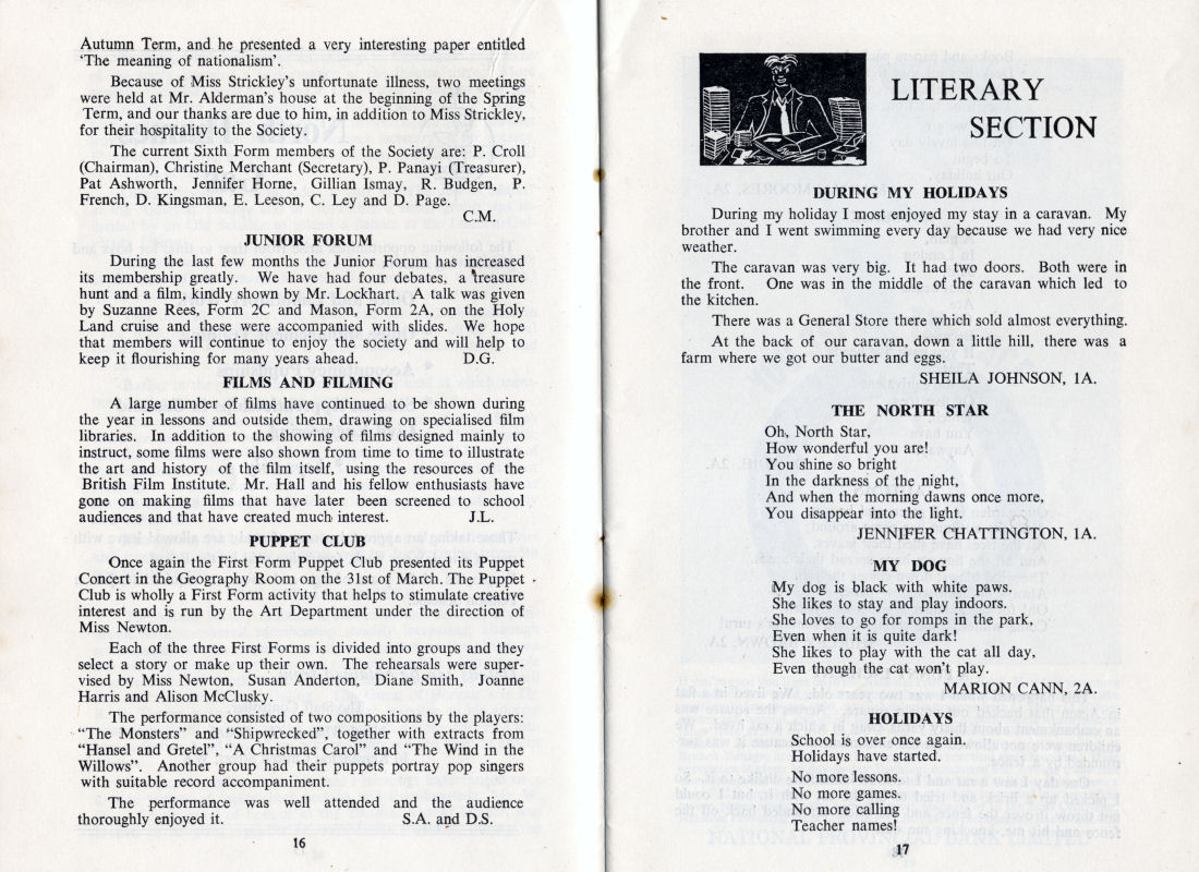 More films than ever are probably being seen weekly by everyone, thanks to the screening of so many films on television every week. Visits to local cinemas have not grown less. There is an increasing need as a result to try to provide some guidance in the selection of films by means of actual programmes designed to foster better understanding of films and filming. Already Mr. Hall has shown and is showing how films are actually made in the school, using 8mm film stock. In addition a certain number of films have again been shown to develop proper appreciation of films-