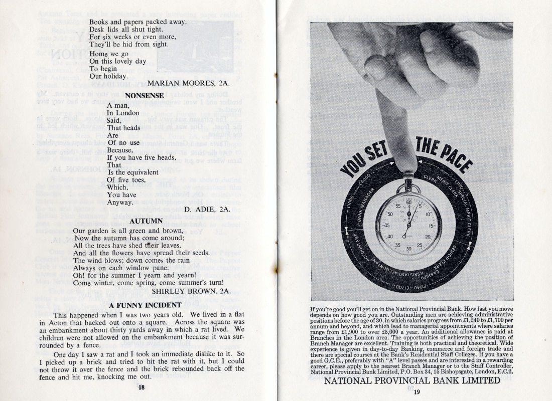 In the production of this issue which extends virtually over the whole school year many pupils and others have to be thanked for their help: we particularly thank the School Office for help always willingly given, Miss A- Dixon who has supplied us with information about Old Scholars as usual, members of 3A and 4A who typed for us, all contributors of original articles and poems and reports that appear in this issue and finally the Portsmouth Printers who year after year have always taken such care in the production of each magazine.
