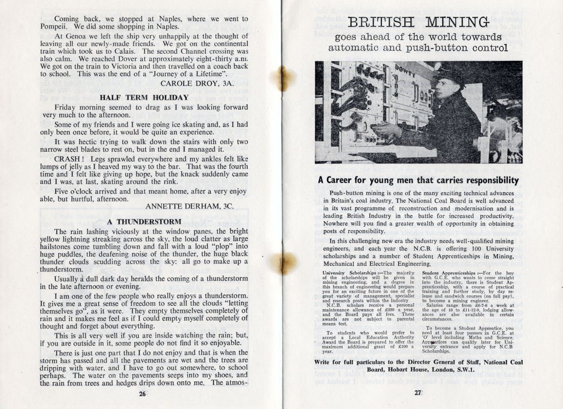 p26 A JOURNEY OF A LIFETIME CAROLE DROY, 3A. HALF TERM HOLIDAY ANNETTE DERHAM, 3C. p27