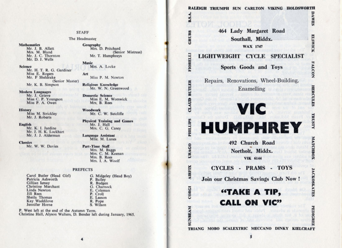 Part-Time Staff Mrs. M. Baggs, Mrs. C. M. Keenan, Mrs. B. Rees, Mrs. I. A. Woolf