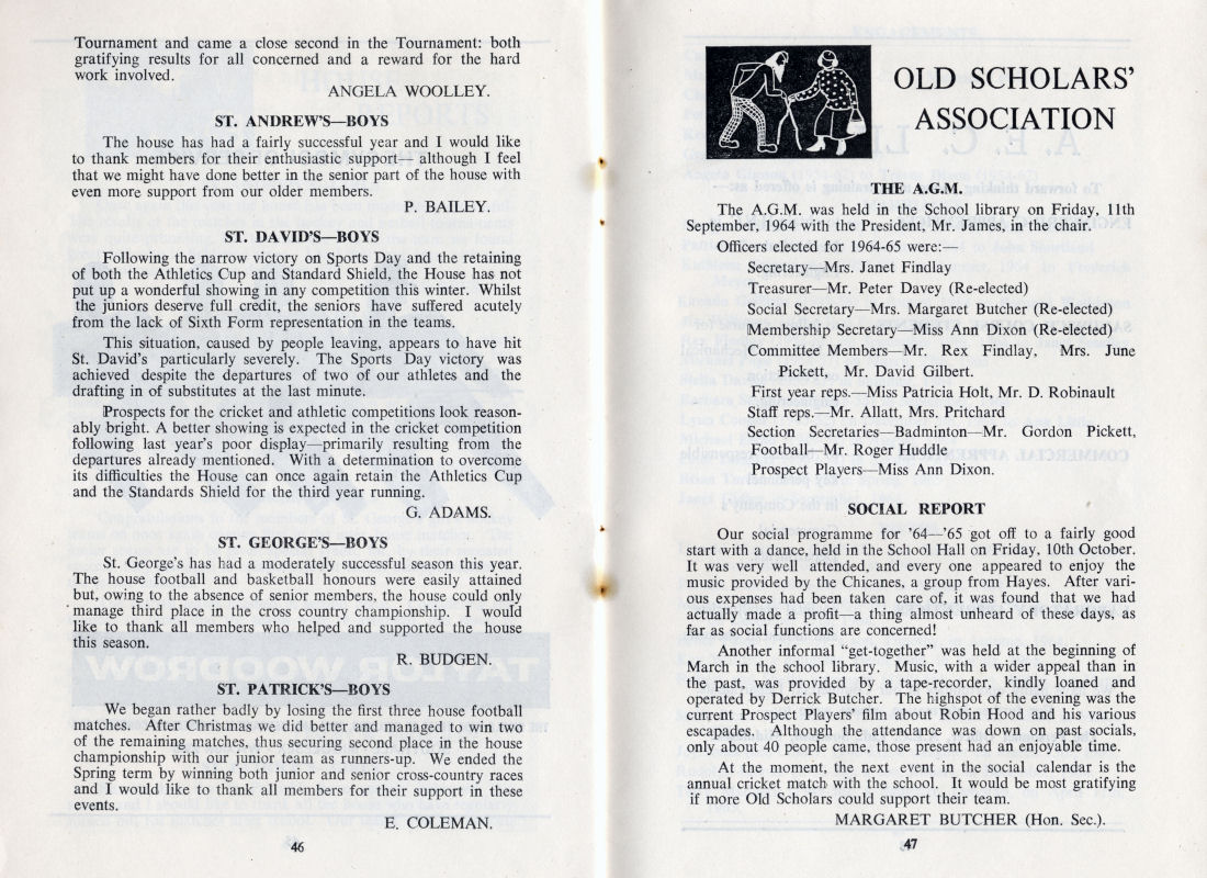 The A.G.M. was held in the School library on Friday, 11th September, 1964 with the President, Mr. James, in the chair.