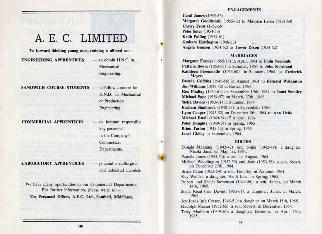 Nicola Jane, on May 1st, 1964. Pamela Jones (1954-59): a son, in August, 1964.