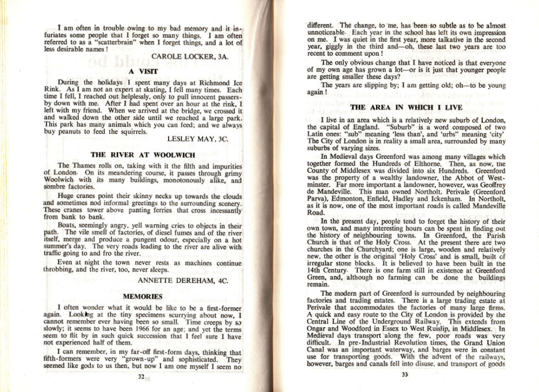 I often wonder what it would be like to be a first-former again. Looking at the tiny specimens scurrying about now, 1 cannot remember ever having been so small. Time creeps by so slowly; it seems to have been 1966 for an age; and yet the terms seem to flit by in such quick succession that I feel sure I have not experienced half of them.