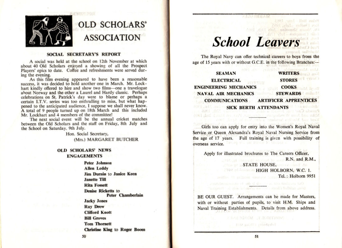 A social was held at the school on 12th November at which about 40 Old Scholars enjoyed a showing of all the Prospect Players' epics to date. Coffee and refreshments were served during the evening.